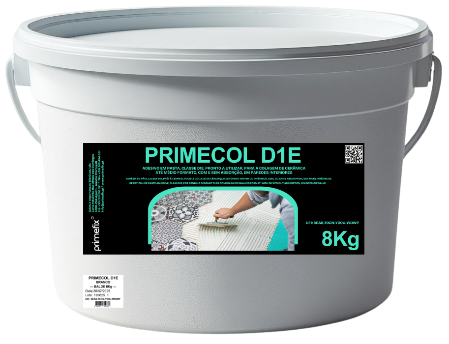 Adhésive en pâte, classe D1E, prêt à l'emploi, pour la fixation de céramique jusqu'au format moyen, avec ou sans absorption, sur des murs intérieurs
